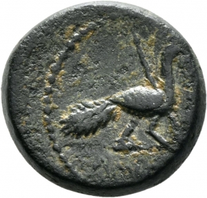 ΣΑΜΙ[ΩΝ]. Pfau auf Caduceus stehend nach r., dahinter Zepter. |