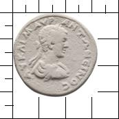 | Vorderseite | ΑΥ ΚΑΙ Μ ΑΥΡ ΑΝΤΩΝΕΙΝΟΣ [Σ als C, rundes E, Y als V]. Büste des Caracalla mit Lorbeerkranz nach r. |