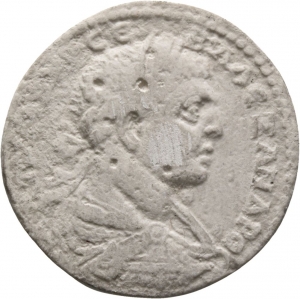 Vorderseite: [ΑΥΤ Κ Μ] ΑΥΡ ΣΕ-Β ΑΛΕΞΑΝΔΡΟΣ [Σ als C; Y als V; rundes E]. Büste des Severus Alexander mit Lorbeerkranz nach r.